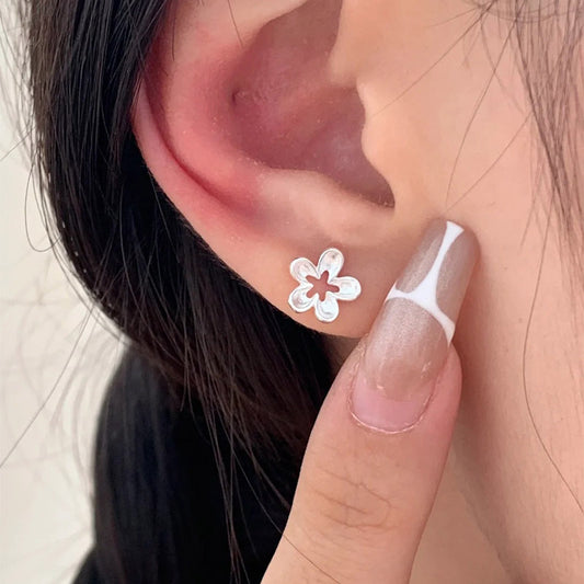 F廠【DQ10107E】S925純銀簡約小清新花朵耳環女精緻鏤空小花亮銀色迷你耳飾潮 25.04-3