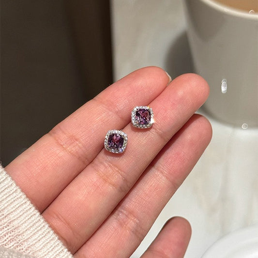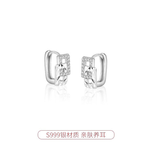 F廠【DQ10129E】999足銀日韓輕奢棱面幾何切割方形耳扣ins冷淡風氣質耳環耳飾 25.04-4
