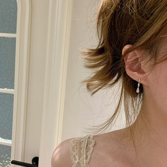 F廠【DQ10158E】S925純銀韓版氣質光面水滴耳環女簡約小雨滴閃鋯通勤百搭耳飾 25.03-2