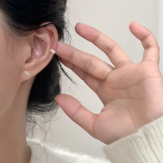 F廠【DQ10232E】足銀999迷你小巧蝴蝶結耳環女螺旋擰扣耳飾簡約純銀耳骨釘潮 25.03-3