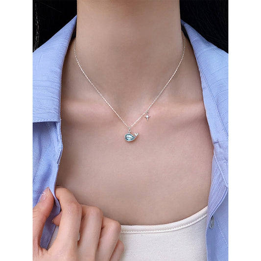 F廠【DQ1011N】S925純銀鯨魚項鍊女小眾高級感藍鋯石鎖骨鏈輕奢爆款首飾 25.08-2