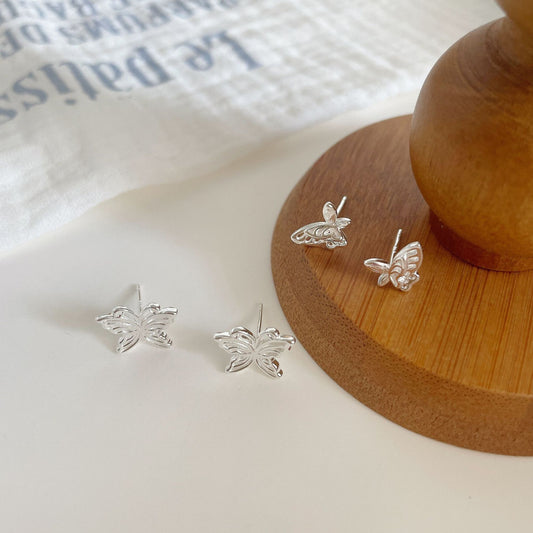 F廠【DQ10104E】足銀999日韓精緻鏤空蝴蝶耳環女氣質簡約雙層蝴蝶百搭耳飾潮 25.02-3