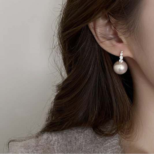 F廠【DQ10170E】氣質輕奢14mm水桶仿珍珠耳扣女S925銀高級感閃鑽耳環 25.09-3