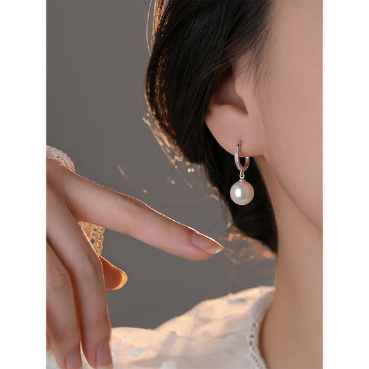 F廠【DQ10106E】S925純銀輕奢正圓仿珍珠耳扣女氣質微鑲精緻耳環高級感耳飾潮 25.09-3