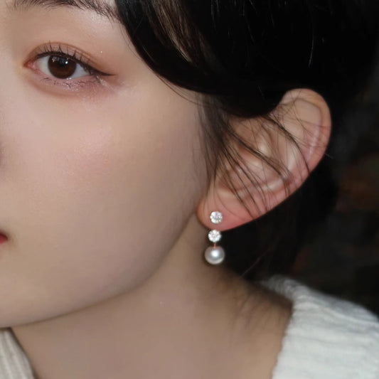 F廠【DQ10261E】S925純銀正圓施家仿珍珠耳環女優雅精緻一款三戴氣質耳環耳環 25.04-4