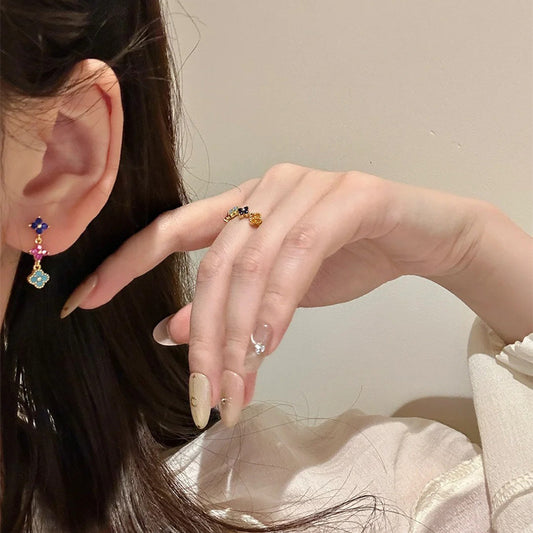 F廠【DQ10437E】復古多巴胺四葉草耳環女S925純銀法式高級感仿藍松石氣質耳飾 25.09-1