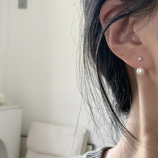 F廠【DQ10456E】足銀999淡水珍珠u形耳環女森系簡約螺絲扭耳環弧形後掛式耳飾 25.04-2