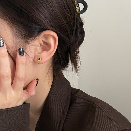 F廠【DQ10438E】999純銀小眾設計羅馬數位耳環女簡約氣質黑色滴膠圓環耳飾潮 25.09-1