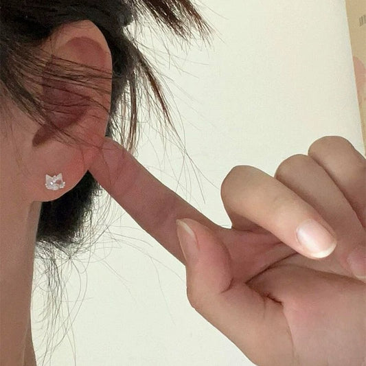 F廠【DQ10394E】足銀999精緻可愛超閃小貓咪耳環女氣質小巧鑲閃鋯高級感耳飾 25.04-2