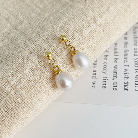 F廠【DQ10426E】S925純銀法式復古天然淡水珍珠耳環女時尚小眾水滴形耳環耳飾 25.03-3