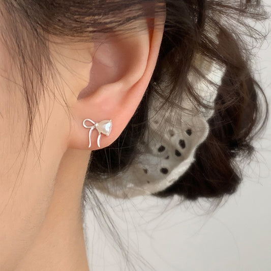 F廠【DQ10390E】S925純銀愛心仿珍珠蝴蝶結耳環女ins風小眾高級感甜美耳飾潮 25.09-3