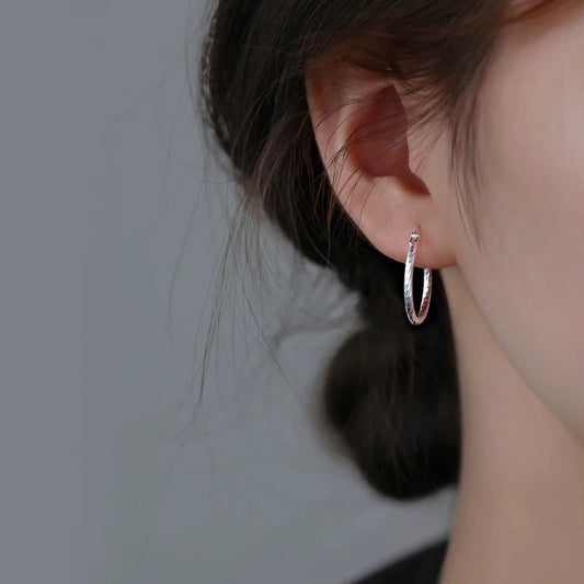 F廠【DQ10429E】通體S925純銀韓版素圈耳環女個性線耳圈C形實心百搭耳飾潮 25.09-1