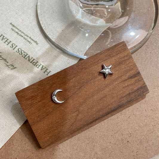 F廠【DQ10441E】S999純銀不對稱耳環女小眾精緻星月耳環韓版百搭星星月亮耳飾 25.09-1