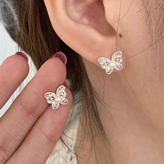 F廠【DQ10766E】足銀999甜美精緻蝴蝶仿珍珠耳環小眾高級感鏤空純銀耳飾女潮 25.05-4