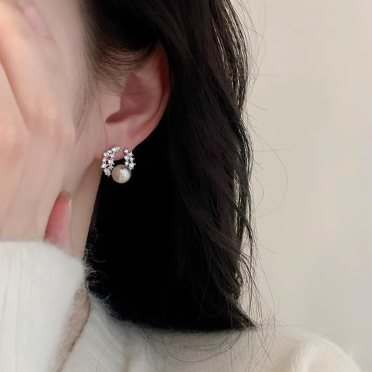F廠【DQ10786E】S925純銀法式復古施家仿珍珠耳環女小香風銀河派對閃鑽耳飾品 25.03-3