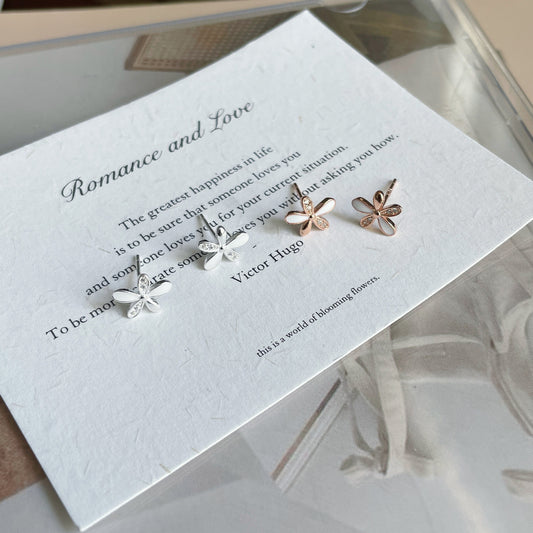 F廠【DQ10758E】S925純銀甜美小清新花朵耳環女簡約設計感白色五瓣花百搭耳飾 25.05-3