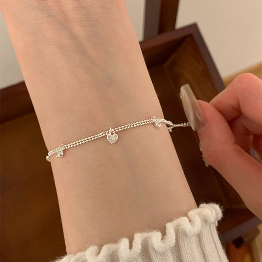 F廠【DQ1074S】S925純銀輕奢小眾愛心鋯石流蘇手鍊女韓風氣質蕾絲感百搭手飾 25.10-1