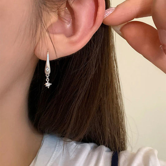 F廠【DQ10785E】S925純銀清冷感霧面四芒星耳環簡約高級感星星耳環獨特耳飾女 25.04-3