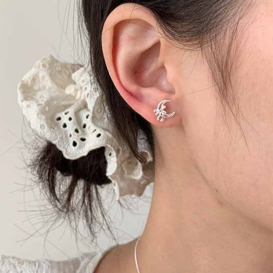 F廠【DQ10759E】簡約小眾蝴蝶結月亮耳環女S925純銀甜美輕奢感月牙百搭耳飾潮 25.04-4
