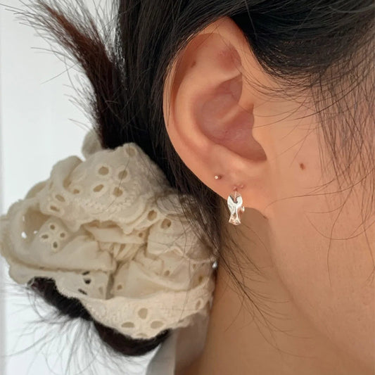 F廠【DQ10698E】足銀999韓版簡約C形莫比烏斯耳環個性簡約不規則曲面耳環女 25.04-4