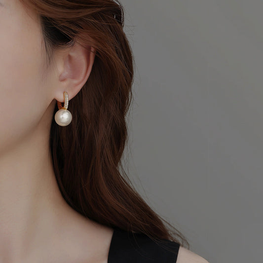 F廠【DQ10765E】S925純銀法式輕奢正圓仿珍珠耳扣女高級感微鑲經典百搭耳環潮 25.09-3
