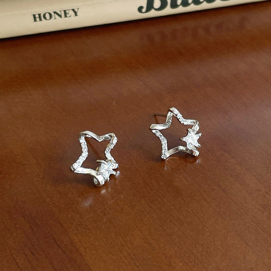 F廠【DQ10661E】足銀999簡約ins鏤空星星耳環女小眾設計感五角星精緻百搭耳飾 25.05-4