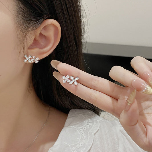 F廠【DQ10764E】S925純銀韓系滿鑽四葉草耳環小清新鋯石耳骨釘疊戴花朵耳飾女 25.08-2