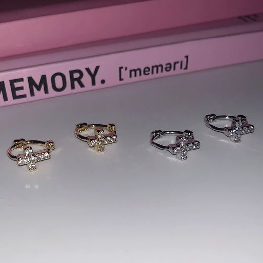 F廠【DQ10722E】S925純銀小眾設計十字架扣女高級感鑲鑽甜酷風耳環氣質耳飾 25.04-4