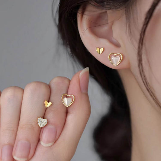 F廠【DQ11590E】小眾輕奢S925純銀愛心耳環女精緻簡約仿貓眼耳環心形閃鋯耳飾 24.09-1