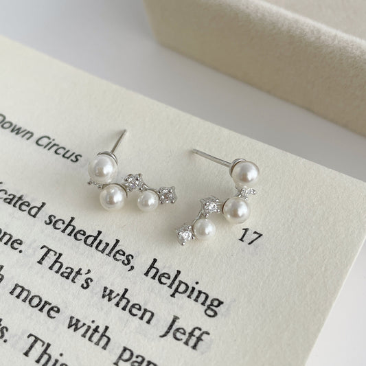 F廠【DQ11491E】S925純銀仿珍珠耳環女氣質高級感北斗星閃鋯甜耳環耳環 25.09-4
