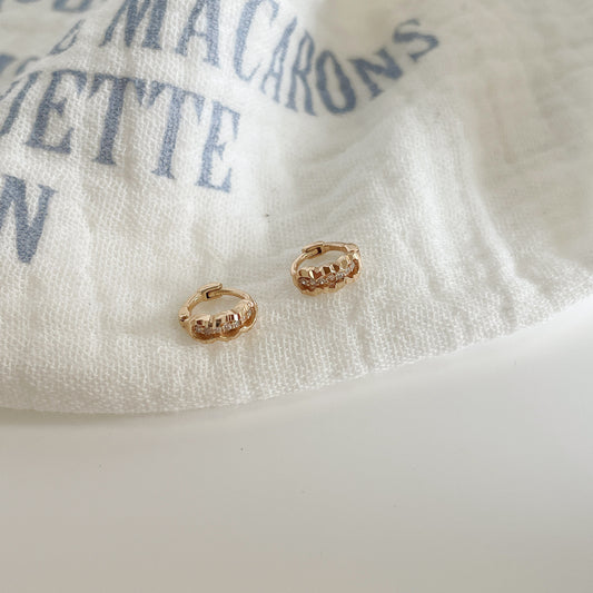 F廠【DQ11575E】S925純銀法式復古波浪邊耳扣女超迷你微鑲耳骨圈日韓可愛耳環 25.02-4
