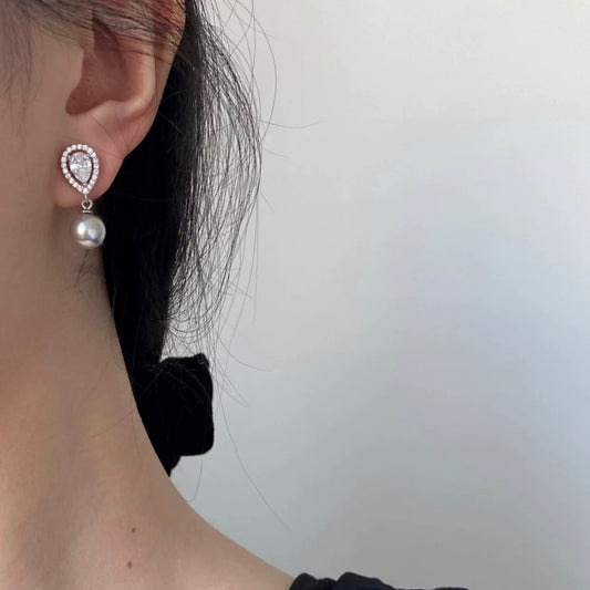 F廠【DQ11519E】法式優雅S925純銀水滴閃鋯耳環女精緻輕奢正圓仿珍珠復古耳飾 25.09-4