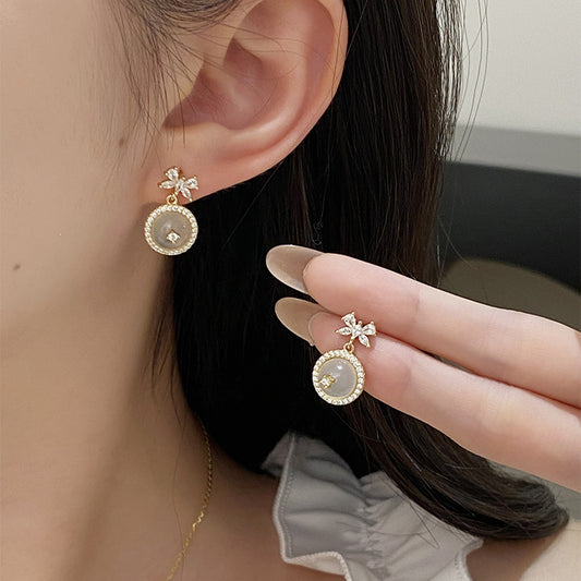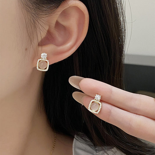 F廠【DQ11468E】實拍幾何設計天然白玉髓耳環女S925純銀輕奢氣質ins耳飾 25.08-5