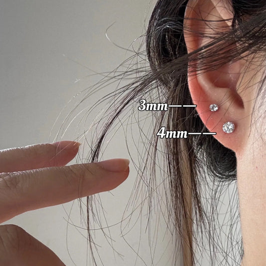 F廠【DQ11626E】S925純銀圓形閃鋯耳環女小巧精緻螺絲鎖扣養耳洞耳骨釘耳飾潮 25.01-2