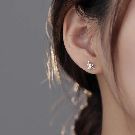 F廠【DQ11586E】足銀999精緻輕奢蝴蝶耳環女小眾設計閃鑽蝴蝶簡約純銀耳飾潮 25.06-4
