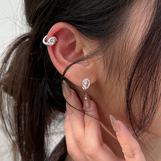 F廠【DQ11646E】S925純銀時尚簡約四爪單鑽耳扣女輕奢ins風幾何橢圓鋯石耳環 25.08-5