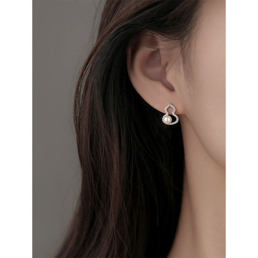 F廠【DQ11567E】S999純銀新中式葫蘆仿珍珠耳環女輕奢小眾鏤空福祿高級感耳飾 25.09-3