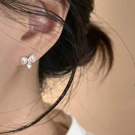 F廠【DQ11501E】足銀999小眾設計感蝴蝶結愛心耳環女精緻甜美螺絲擰純銀耳飾 25.05-5