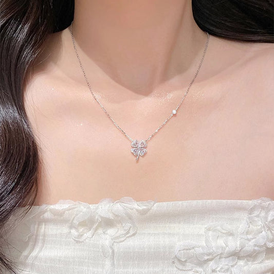 F廠【DQ1216N】法式輕奢幸運四葉草閃鑽項鍊女S925純銀氣質鋯石路路通鎖骨鏈 25.09-2
