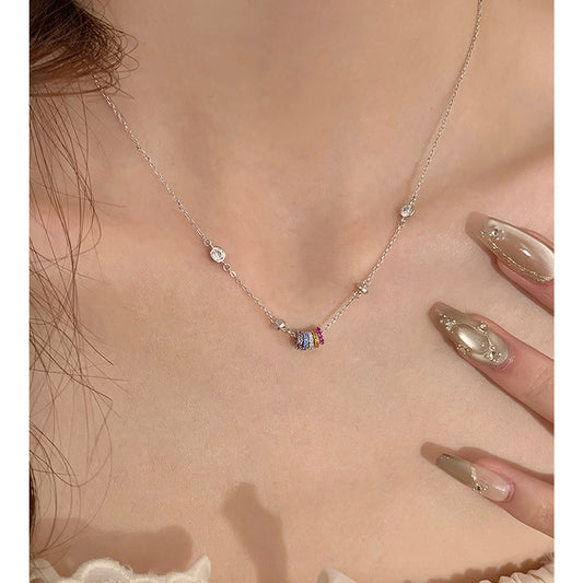 F廠【DQ1178N】時尚彩虹小蠻腰多層吊墜項鍊女S925純銀小眾設計路路通鎖骨鏈 25.09-3