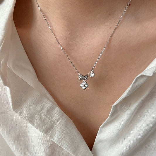 F廠【DQ1238N】足銀999精緻鋯石四葉草項鍊女輕奢時尚高級感花朵純銀鎖骨鏈 25.07-2