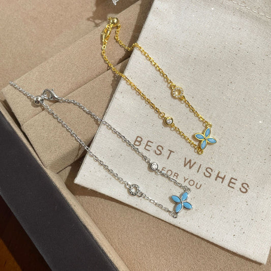 F廠【DQ1189S】S925純銀中古風四葉花手鍊女高級感氣質四葉草藍松石疊戴手飾 25.08-5
