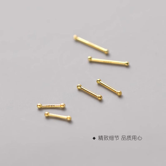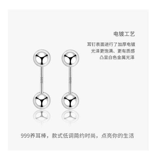 F廠【DQ11684E】999足銀耳環女簡約雙頭養耳棒睡覺免摘耳棍男女基礎耳飾 25.03-3