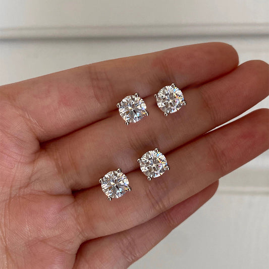 F廠【DQ11713E】S925純銀爆閃四爪單鑽耳環女韓系氣質輕奢高級感鑲鋯石耳飾潮 25.05-3