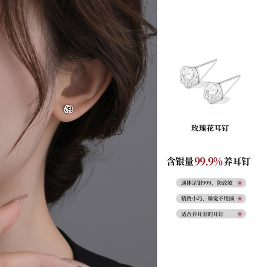 F廠【DQ11741E】S999純銀耳環女簡約四葉草足銀耳環養耳洞耳骨釘耳飾 25.08-5