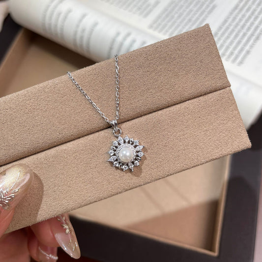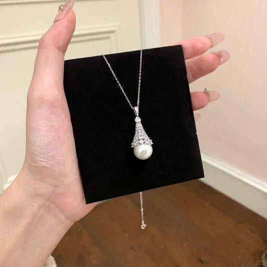 F廠【DQ1222N】法式輕奢風滿鑽雪塔珍珠925純銀項鍊頸鍊女氣質名媛風鎖骨鏈 25.08-5