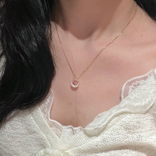 F廠【DQ1243N】S925純銀輕奢小眾跳動的心項鍊女玫瑰金粉鋯高級感吊墜鎖骨鏈 25.10-1
