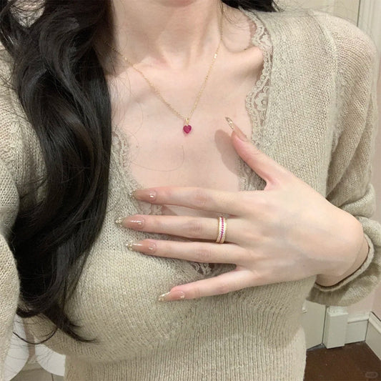 F廠【DQ1170N】S925純銀復古玫紅愛心項鍊女高級感心形鋯石鎖骨鏈 25.10-2