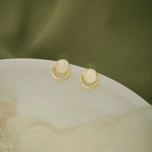 F廠【DQ11680E】S925純銀輕奢天然白玉髓耳環女小眾高級幾何圓形百搭氣質耳飾 25.02-3