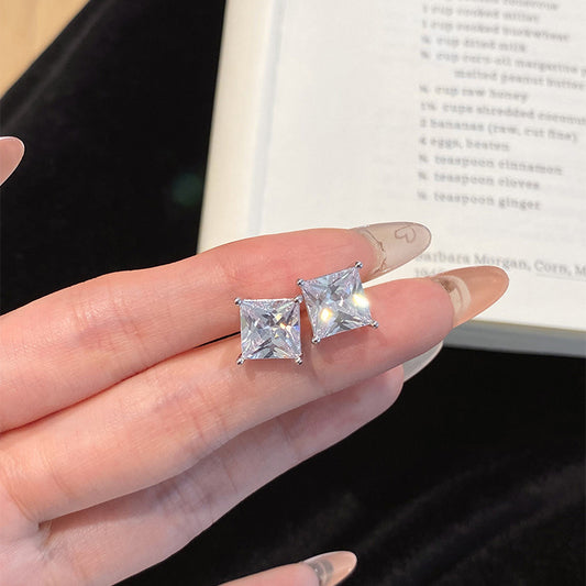 F廠【DQ11710E】S925純銀公主方鑽四爪耳環女簡約時尚高級感超閃單鑽精緻耳飾 25.05-3
